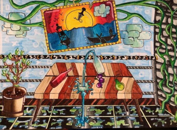 En 4e : A partir des éléments de cette oeuvre de Dali, les élèves devaient représenter leur propre « nature morte vivante ». Un autre travail très réussi : celui de Nesrine, 4eD :