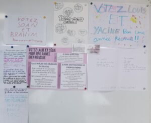 Les candidats aux élections des délégués de classe de la 4F, qui auront lieu vendredi 10 octobre, ont fait campagne aujourd’hui. Les 5 candidats ont présenté leurs programmes accompagné du délégué suppléant.