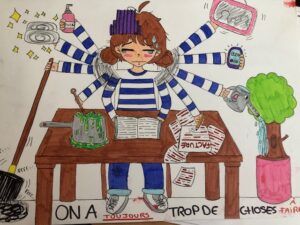 En 5e, les élèves ont travaillé sur le thème « débordé » :