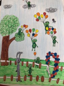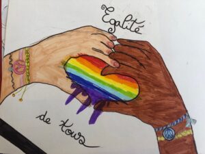 Les élèves de 6e ont travaillé sur ce thème en début d’année. Des dessins sont exposés devant la salle des professeurs.