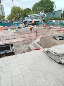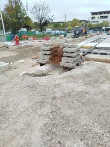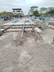 – la pose des rails du tramway puis le coulage du béton pour les maintenir.