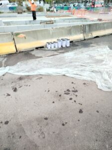 24 heures après le coulage du béton, nettoyage du résidu (laitance) avec un nettoyeur haute pression (400 bars).