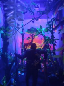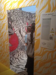 C’est une exposition d’art, à laquelle 41 artistes ont participé. Chacun de ces artistes devait décorer une salle de 9m² en utilisant soit de la peinture, du carton, des décors, du crochet…