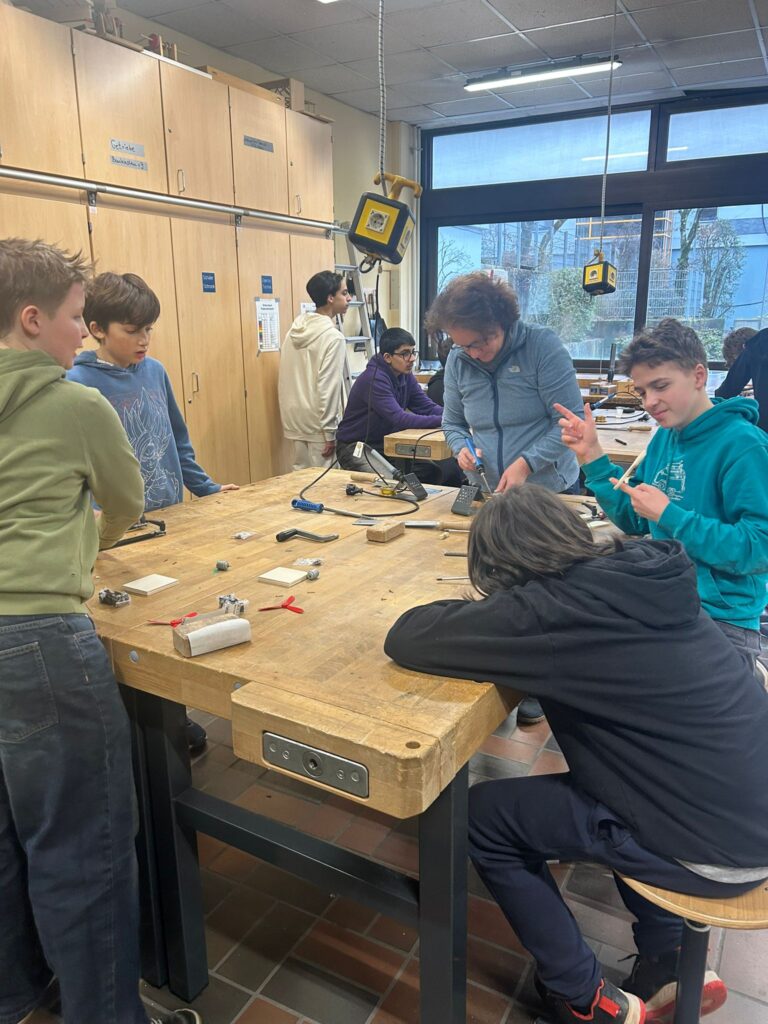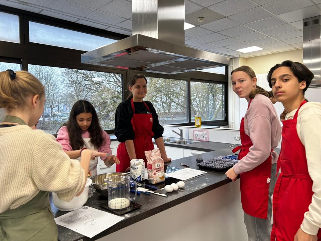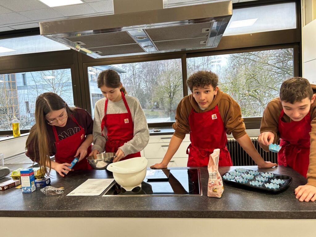 Vendredi nous nous sommes retrouvés à la « Réalschule de WEINGARTEN » nous avons rencontré la principale, Frau PAUL. Ensuite on nous a repartis en deux groupe pour faire deux ateliers avec nos correspondants : un cours de technique où nous avons construit des petits ventilateurs et un cours de cuisine où nous avons préparé des muffins au pépites de chocolat (c’étaient délicieux). Puis nous sommes parti en train pour aller manger des « SPÄTZLE » au restaurant (ce sont des pâtes au fromage) puis nous avons marché jusqu’aux thermes- c’était génial !- et il s’est mis à neiger pendant qu’on était dans les bains de dehors. À la fin de la journée nous avons repris le train pour rentrer chez nos correspondants chez qui on a passé la soirée.