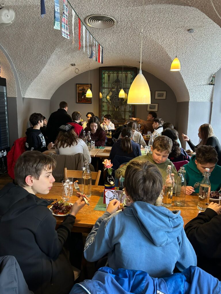 Jeudi matin, nous avons pris le train à 10h et nous sommes arrivés à 20h56 à Ravensburg avec 1h20 de retard. Arrivés à Ravensburg, on est tous allés avec nos correspondants et nos familles d’accueil chez eux. On était un peu stressés mais on savait qu’on allait passer une super semaine !