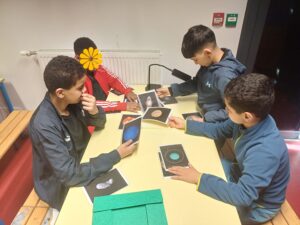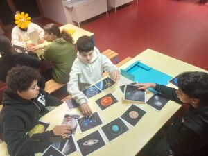 On a joué à un jeu avec des cartes, c’était des planètes. La médiatrice du Planétarium nous a donné des cartes de planètes et d’astéroïdes et on les a classée de celles entre celles font partie du système solaire et celles qui sont en dehors du système solaire.